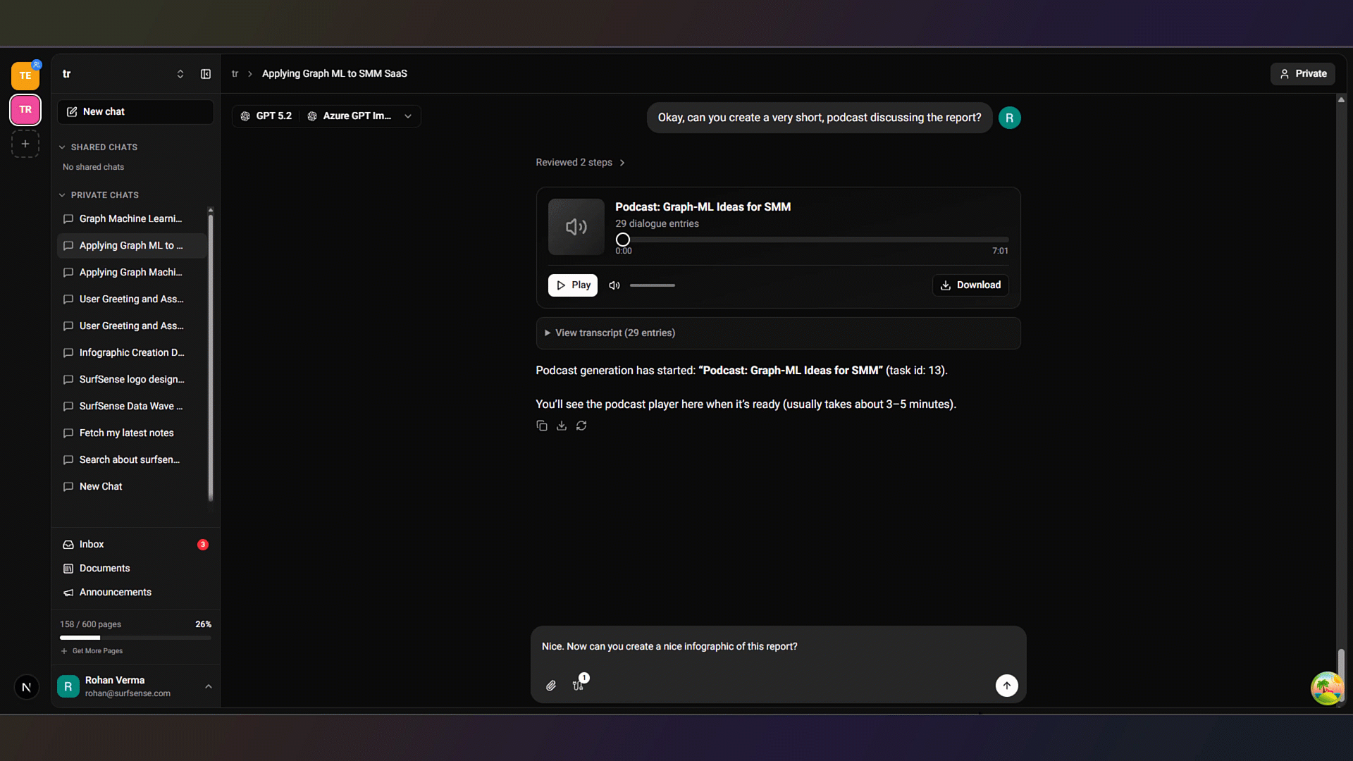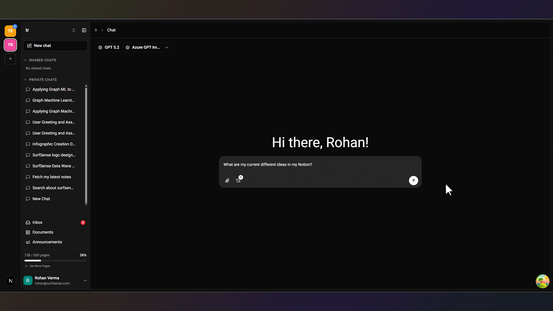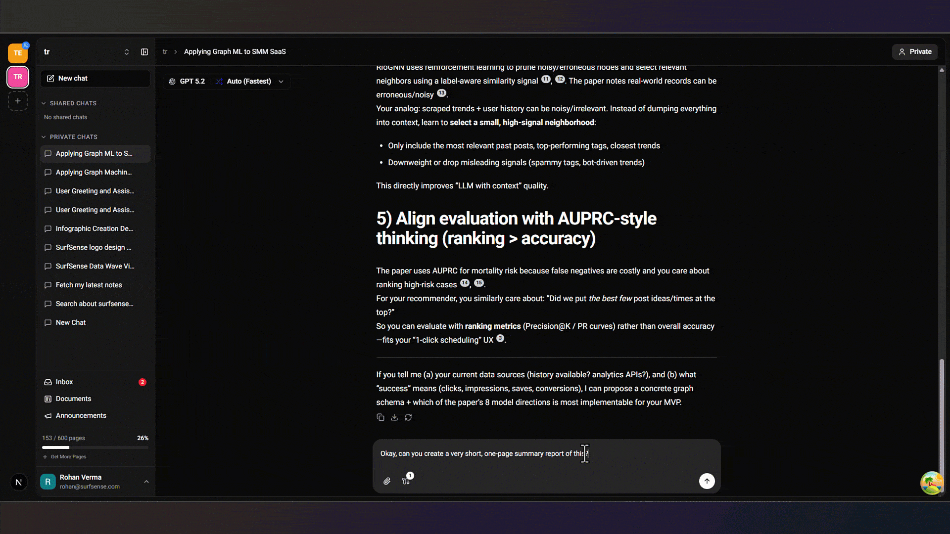 Ask questions and get Perplexity-style cited responses from your knowledge base.